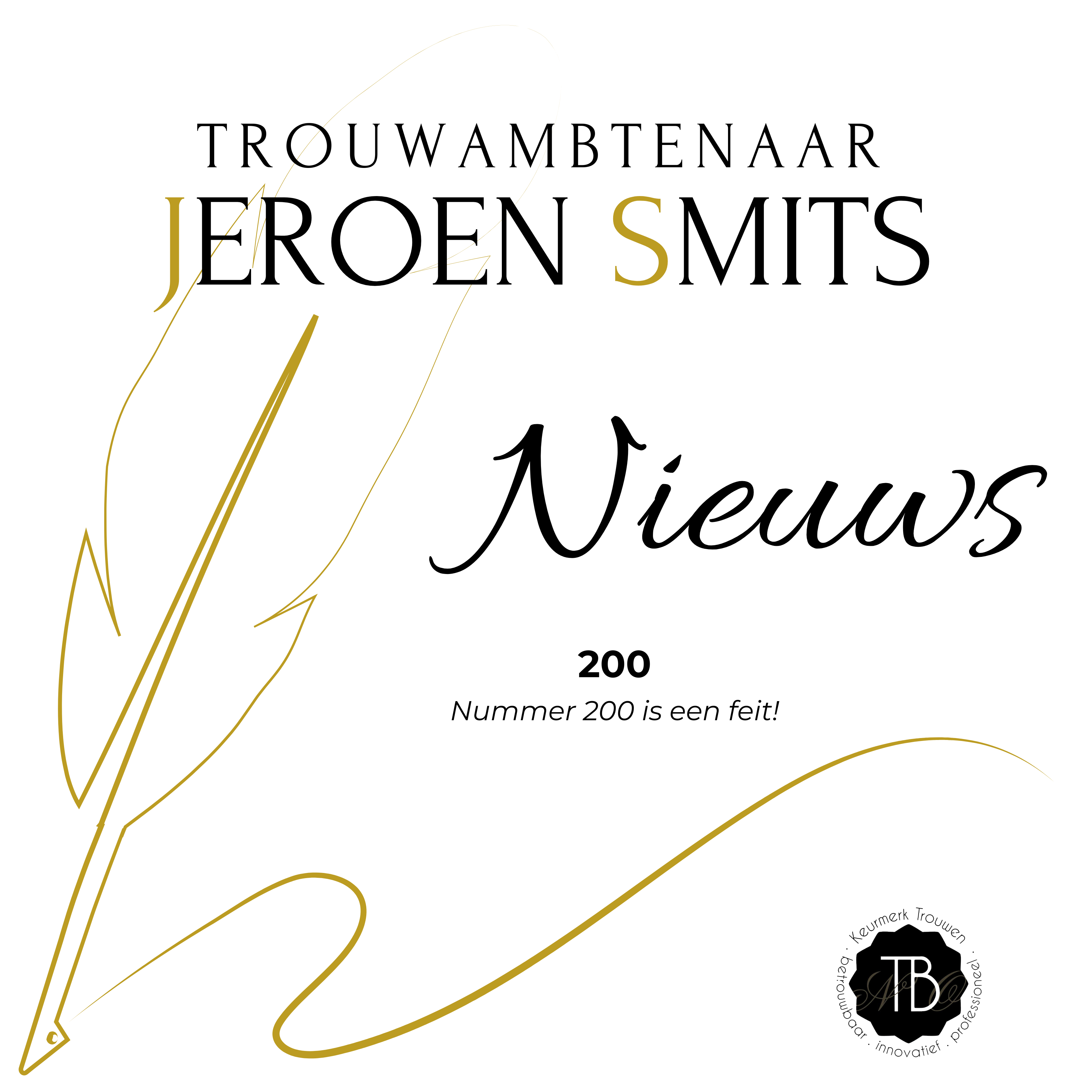Een getal is maar een getal, maar 200 is wel echt iets waar ik met heel veel trots naar kijk. Het vertrouwen krijgen van bruidsparen, die na een vrijblijvende kennismaking beiden roepen dat ik het mag doen, blijft een bijzonder ding. Zoals al eerder geschreven wil ik echt diep in de materie duiken om een maatwerkceremonie te kunnen schrijven. Daar is echt vertrouwen voor nodig en dus zijn er ook bruidsparen die dat niet willen. Om dan in 8 jaar op 200 gesloten huwelijken te komen maakt het extra speciaal.